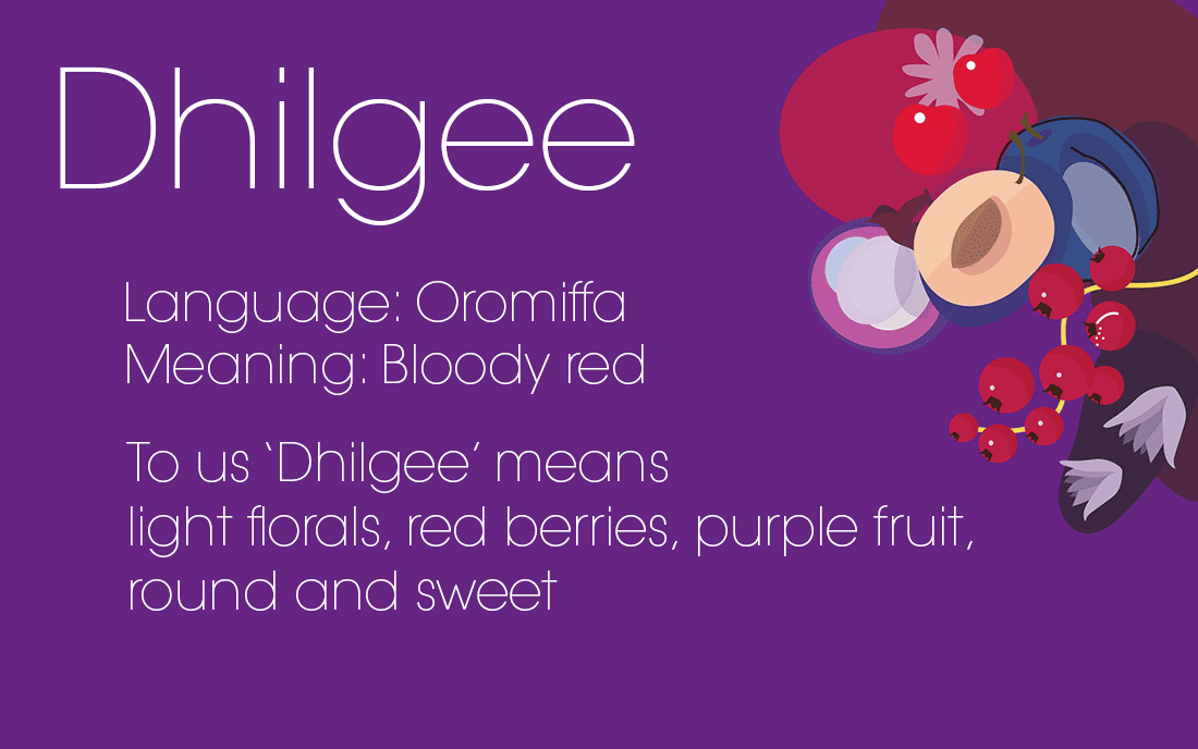 Nordic Approach独自のエチオピアのフレーバープロファイルのカテゴリの1つです。Dhilgeeはオロミファ語で真紅を意味し、このカテゴリは、ソフトフローラル、レッドベリー、パープルフルーツのような丸みのある甘いフレーバーを表しています。